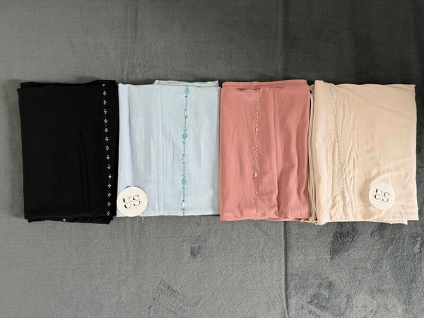 Op zoek naar een elegante hoofddoek voor Eid, bruiloften of speciale gelegenheden? Onze Jersey Cotton Premium Hoofddoek met glitters is precies wat je nodig hebt. Deze prachtige hijab combineert het comfort van katoen en stretch jersey met een subtiele glitterfinish die perfect is voor feestelijke momenten.